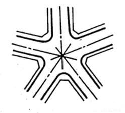 用于多條道路交叉處;一般用地較大、交通組織復雜,應盡量避免。
