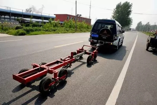 ③啟動牽引汽車,沿道路縱向行駛,橫向位置保持穩定。