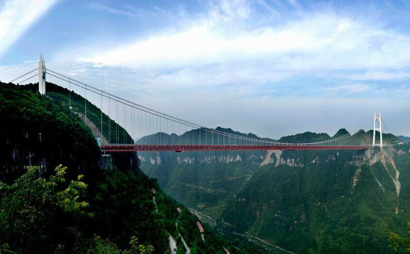 按照橋面系的剛度大小,懸索橋可分為柔性懸索橋和剛性懸索橋。柔性懸索橋的橋面系一般不設(shè)加勁梁,因而剛度較小,在車輛荷載作用下,橋面將隨懸索形狀的改變而產(chǎn)生S形的變形,對行車不利,但它的構(gòu)造簡單,一般用作臨時性橋梁。剛性懸索橋的橋面用加勁梁加強,剛度較大。加勁梁能同橋梁整體結(jié)構(gòu)承受豎向荷載。除以上形式外,為增強懸索橋剛度,還可采用雙鏈式懸索橋和斜吊桿式懸索橋等形式,但構(gòu)造較復(fù)雜。