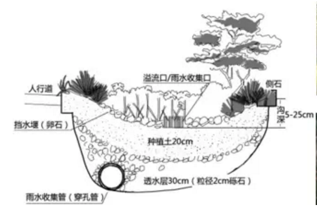 第三是“滯”,主要作用是延緩短時間內(nèi)形成的雨水徑流量。比如說,通過微地形調(diào)節(jié),讓雨水慢慢地匯集到一個地方,用時間換空間。我們城市內(nèi)的降雨,是按分鐘計、按小時計的,這跟大江大河不一樣。城市內(nèi)短歷時強降雨,對下墊面產(chǎn)生沖擊,形成快速徑流,積水攢起來就導(dǎo)致內(nèi)澇。因此,“滯”非常重要,可以延緩形成徑流的高峰。