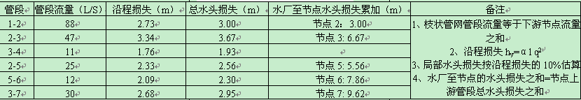 ①沿程水頭損失hy=αl q2, 式中α為管道比阻,與管徑及管內(nèi)壁粗糙系數(shù)有關(guān),l為管道長度,q為流量;