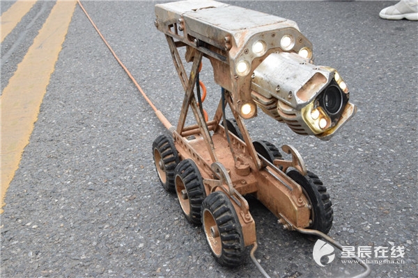 “前頭是個(gè)攝像頭,能360度旋轉(zhuǎn)進(jìn)行拍攝,緊挨著攝像頭的位置有4個(gè)大燈。”劉燕軍介紹,機(jī)器人的中間位置有個(gè)升降架,這便于探測(cè)不同高度的下水井,機(jī)器人拖著的一條“尾巴”則是連接器,將探測(cè)到的畫(huà)面形成影像傳輸?shù)诫娔X中。據(jù)了解,目前長(zhǎng)沙縣已有20臺(tái)左右這樣的管道機(jī)器人在作業(yè),大力提升了工作效率。