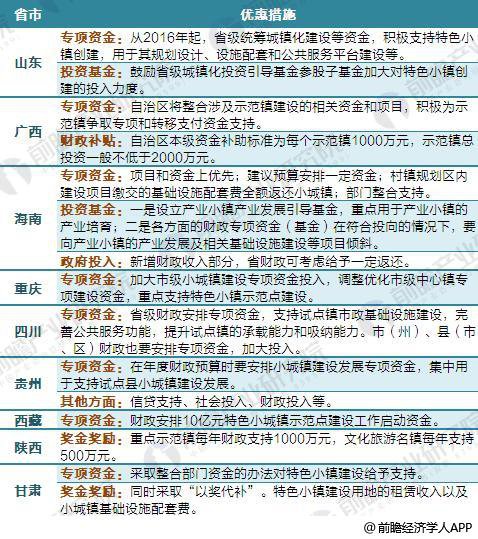 各地方政府也不斷出臺政策對特色小鎮建設進行了規劃,并初步設定了建設目標,同時出臺了配套政策支持建設的推進。目前,浙江、北京、上海、貴州、福建、陜西、廣東、天津、重慶、甘肅、江蘇、四川等地已出臺相關政策,預計會有更多的地區出臺政策推動特色小鎮的建設。
