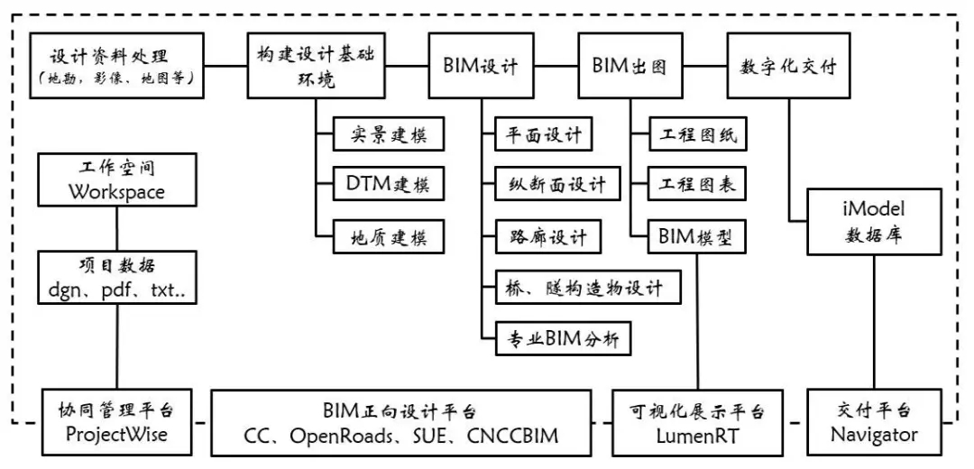 中交一公院以梅觀項(xiàng)目為依托,項(xiàng)目組通過深入研究和探索形成了大型復(fù)雜市政項(xiàng)目BIM正向設(shè)計(jì)解決方案。建立了精準(zhǔn)的地質(zhì)、地形、實(shí)景、地下管網(wǎng)等三維BIM模型,并集成融合構(gòu)建了全新三維可視化設(shè)計(jì)基礎(chǔ)環(huán)境;通過研發(fā)CNCCBIM系列軟件,創(chuàng)新性地完成了BIM正向設(shè)計(jì),實(shí)現(xiàn)了基于BIM模型的自動(dòng)出圖,通過可視化展示平臺(tái)動(dòng)態(tài)展示項(xiàng)目效果,革新設(shè)計(jì)手段和展示方式;探索數(shù)字化交付平臺(tái),實(shí)現(xiàn)了設(shè)計(jì)成果的數(shù)字化交付。