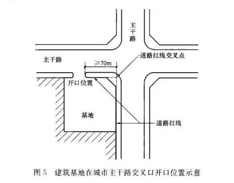 中等城市、大城市的主干路交叉口,自道路紅線交叉點起沿線70.0m范圍內不應設置機動車出入口。