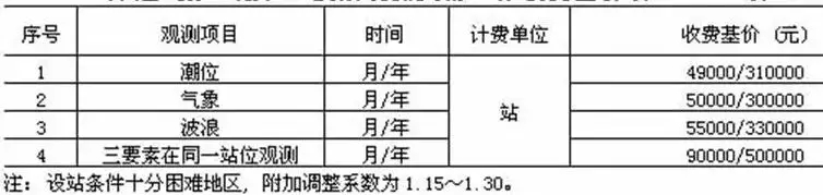 注:1.海況分級見《海濱觀測規(guī)范》;2.本表同時具備兩項及以上因素的,按照最高類別計算收費。