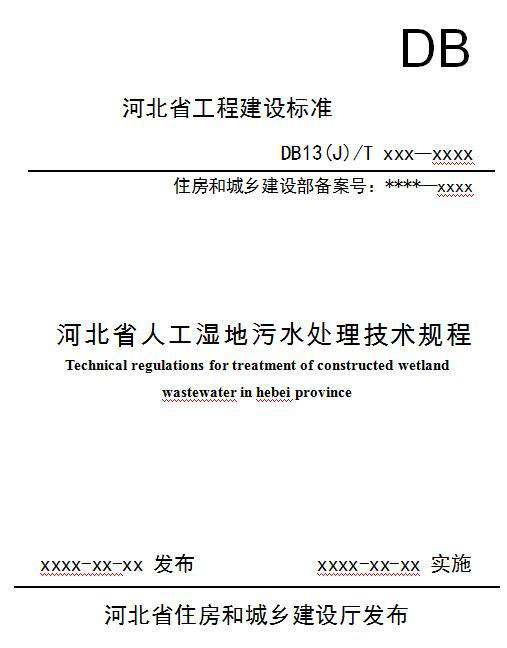 河北省工程建設標準《河北省人工濕地污水處理技術規程》(征求意見稿)