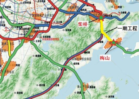 本工程分期實施,一期工程寧波梅山互通至柴橋樞紐段先行實施,力爭2020年開工建設。