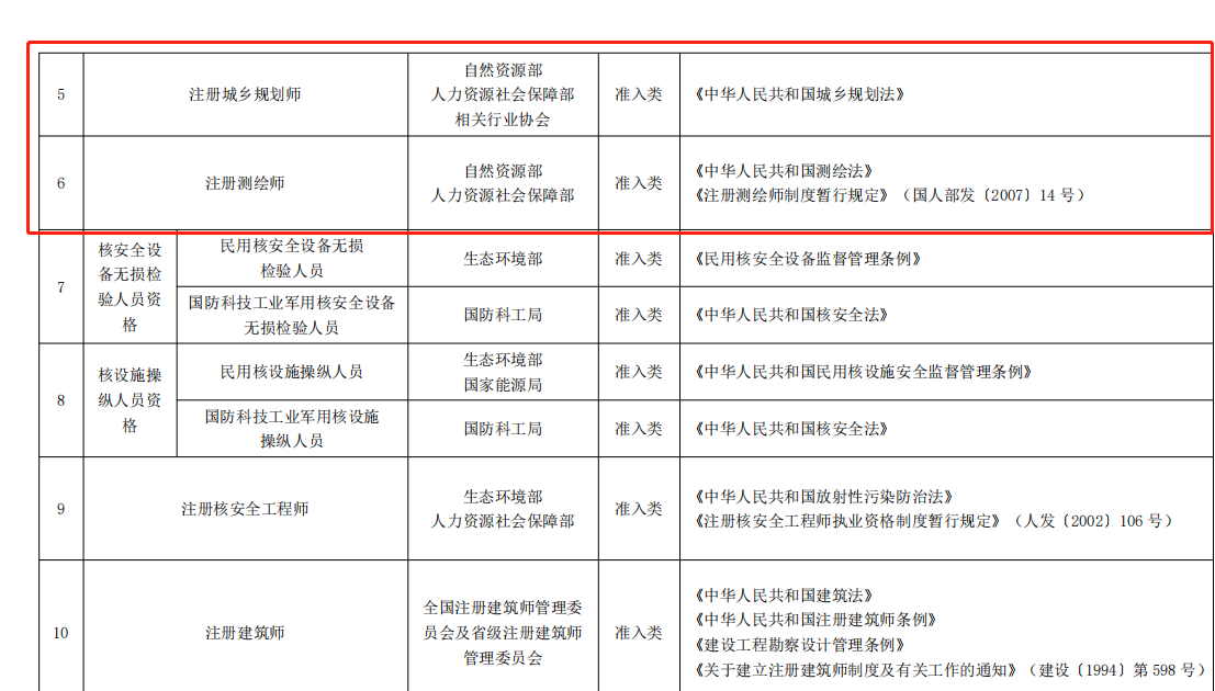 2021年版《國家職業資格目錄》公布 注冊測繪師、注冊城市規劃師資格類別都