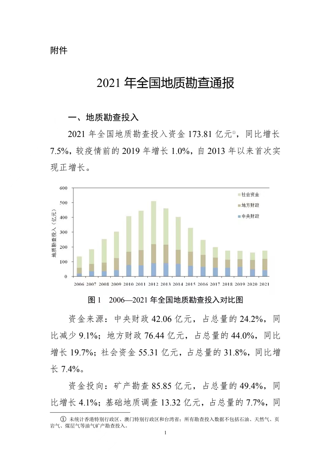 重磅!《2021年全國(guó)地質(zhì)勘查通報(bào)?》發(fā)布