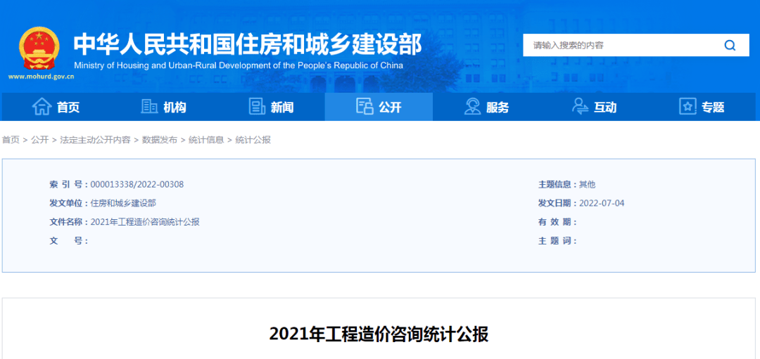 住建部發(fā)布2021年工程造價咨詢統(tǒng)計公報