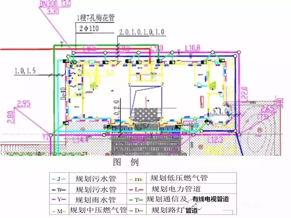 首先應(yīng)考慮室外正負(fù)零標(biāo)高為黃海高層的高度,考慮項(xiàng)目場地回土覆土高度,項(xiàng)目周邊路面標(biāo)高,項(xiàng)目建成后邊界外的小區(qū)環(huán)路標(biāo)高,查看這3個標(biāo)高之間的關(guān)系,搞清楚周邊市政管網(wǎng)的布置及標(biāo)高,根據(jù)施工現(xiàn)場實(shí)際情況進(jìn)行室外管網(wǎng)的綜合布置。