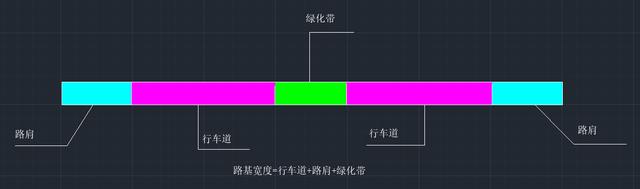 路基寬度:車道寬度與路肩寬度之和。注:可理解為最左邊與最右邊的長(zhǎng)度。