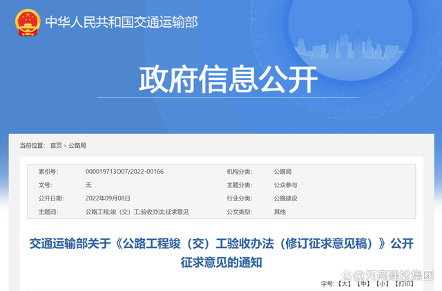 為促進(jìn)公路基礎(chǔ)設(shè)施高質(zhì)量發(fā)展,進(jìn)一步規(guī)范公路工程竣(交)工驗(yàn)收工作,我部對(duì)《公路工程竣(交)工驗(yàn)收辦法》進(jìn)行了修訂,現(xiàn)向社會(huì)公開征求意見。公眾可通過以下途徑和方式提出反饋意見: