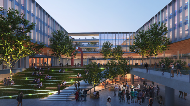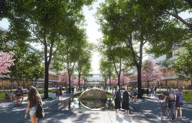 打造以學科貫通為核心的研究型校園,是北交大雄安校區規劃設計的重點。規劃方案設計了一條校園“學術中軸”,公共教學、實驗、研究等功能一應俱全,可承載三大一流學科群和兩大基礎學科建設。該校雄安校區還以交大校訓和飲水思源的傳統為名,規劃了三大廣場:思源、知行、天佑,打造了新明湖水系和24小時開放書院全時交流共享空間。
