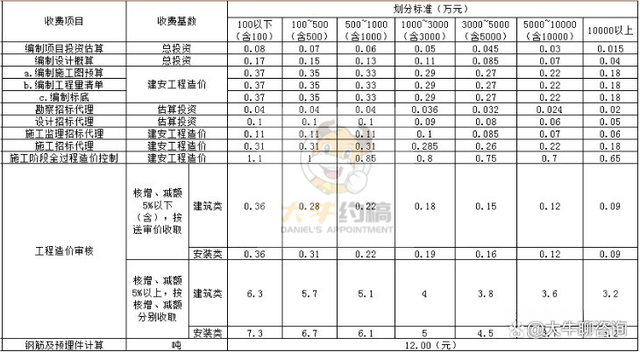 3.需要進(jìn)行鋼筋工程量精細(xì)計(jì)算的,另計(jì)取工程造價(jià)咨詢附加收費(fèi);