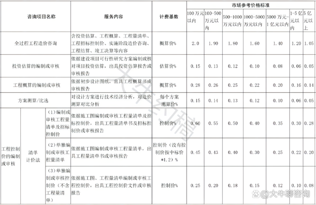 1.工程造價(jià)咨詢服務(wù)收費(fèi)根據(jù)不同咨詢項(xiàng)目的性質(zhì)、內(nèi)容采取差額定率分檔累進(jìn)方法計(jì)算;