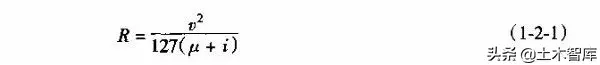 由第一章汽車行駛理論,根據汽車行駛在曲線上力的平衡式(1-1-31)可知圓曲線半徑計算公式為