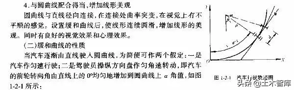 汽車從直線進入圓曲線,或從大半徑圓曲線駛入小半徑圓曲線時,插入緩和曲線,可使汽車前輪轉向角逐漸從0°至a轉向,從而有利于駕駛員操縱方向盤.保證安全行駛。