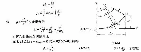 緩和曲線的切線角,是指緩和曲線上任一點的切線與該緩和曲線起點的切線所成夾角。如圖1-2-4所示,設緩和曲線所在直角坐標系XOY,o為原點.在緩和曲線上任意一點P處取一微分弧段ds,則