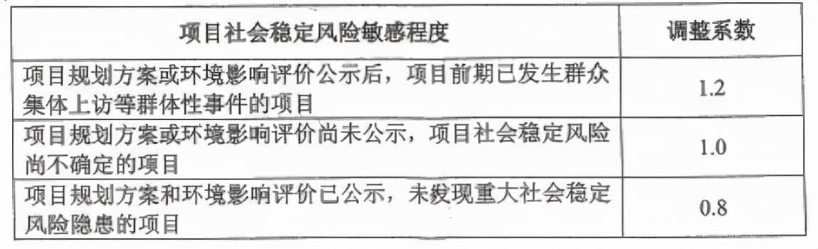表7 社會穩定風險敏感程度調整系數