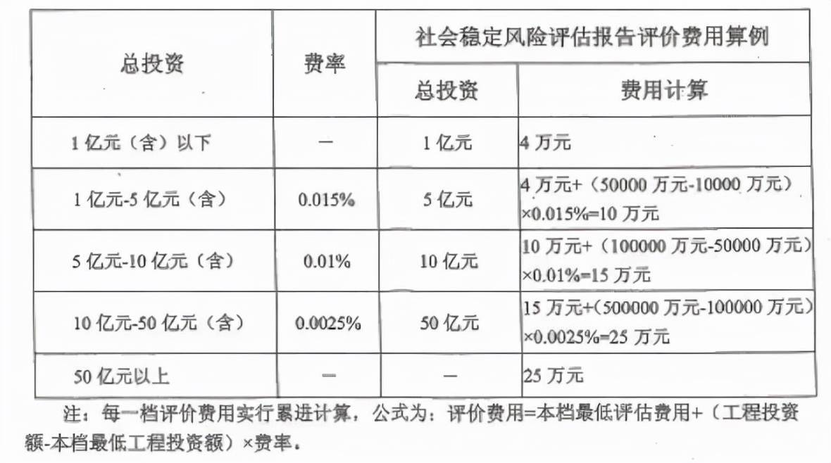 社會穩定風險評估咨詢服務收費標準