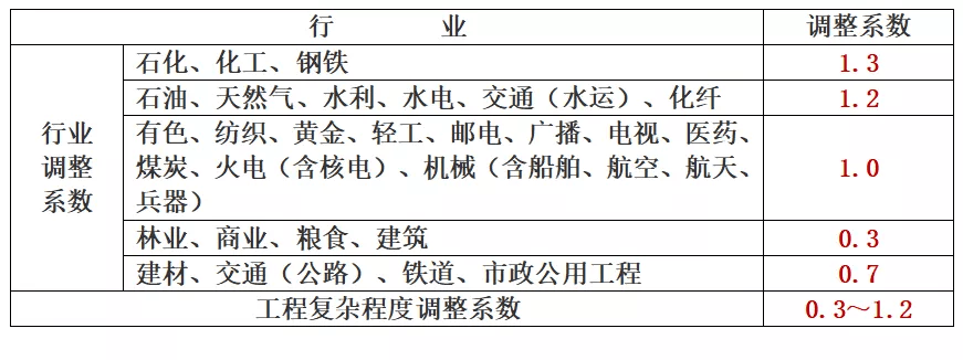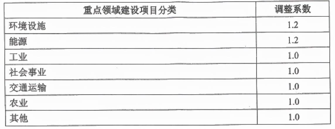 表2 按建設項目估算投資額分檔收費的調整系數