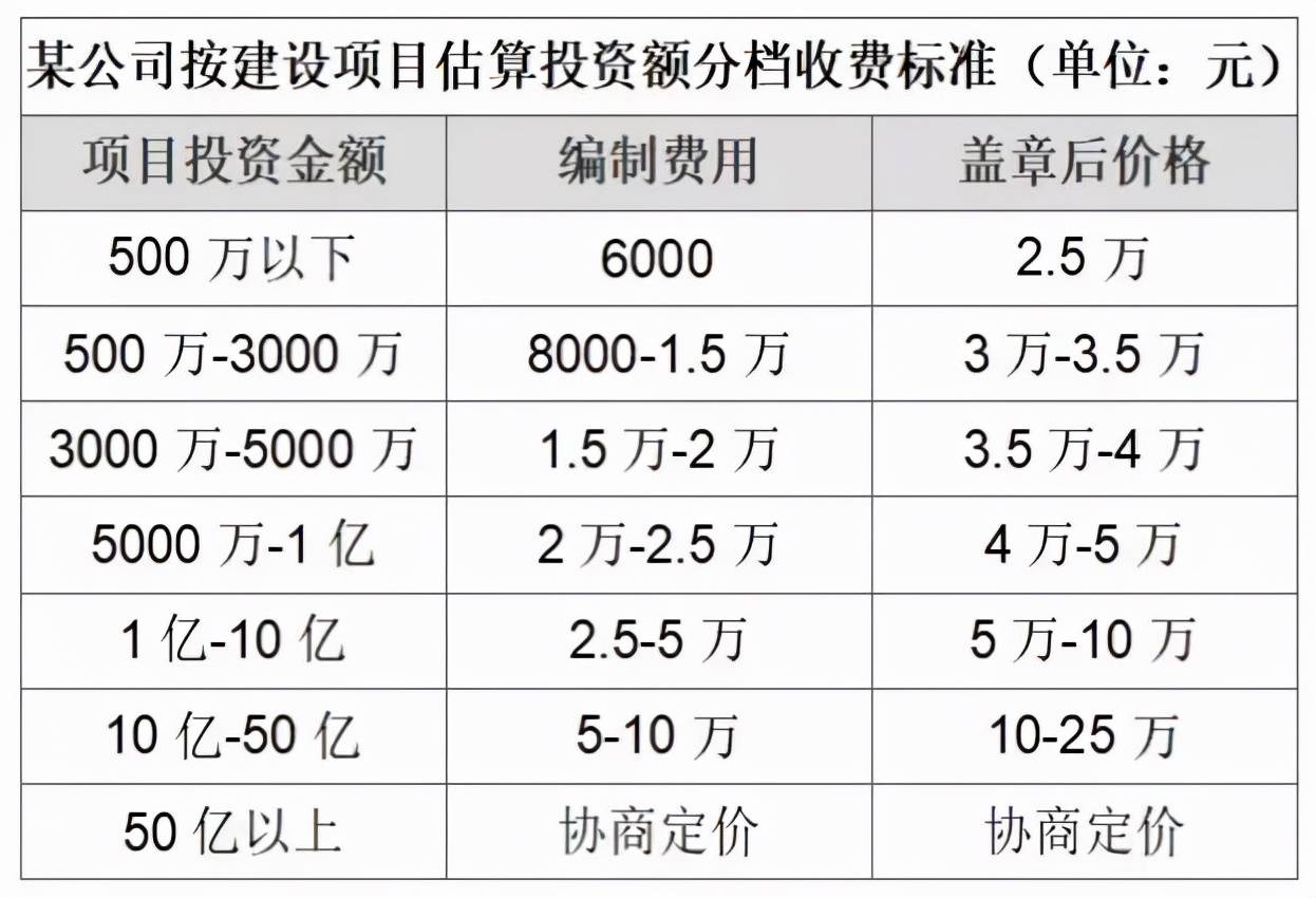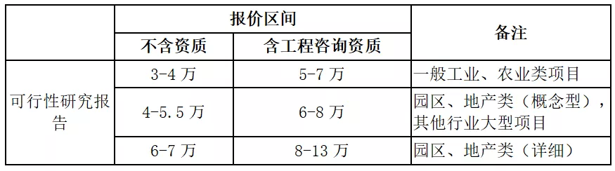 在此列出個別公司的項目可研報告收費標準,來源于網絡,僅做參考,不代表本研究中心的觀點或做法。