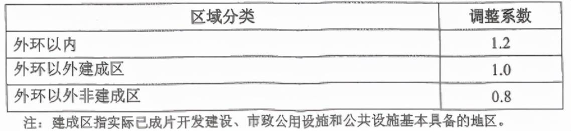 表8 區域范圍調整系數