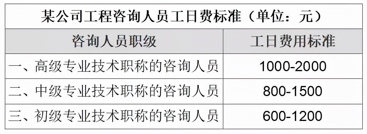方法2:按工程咨詢工作所耗工日計算費用(詳見表3)