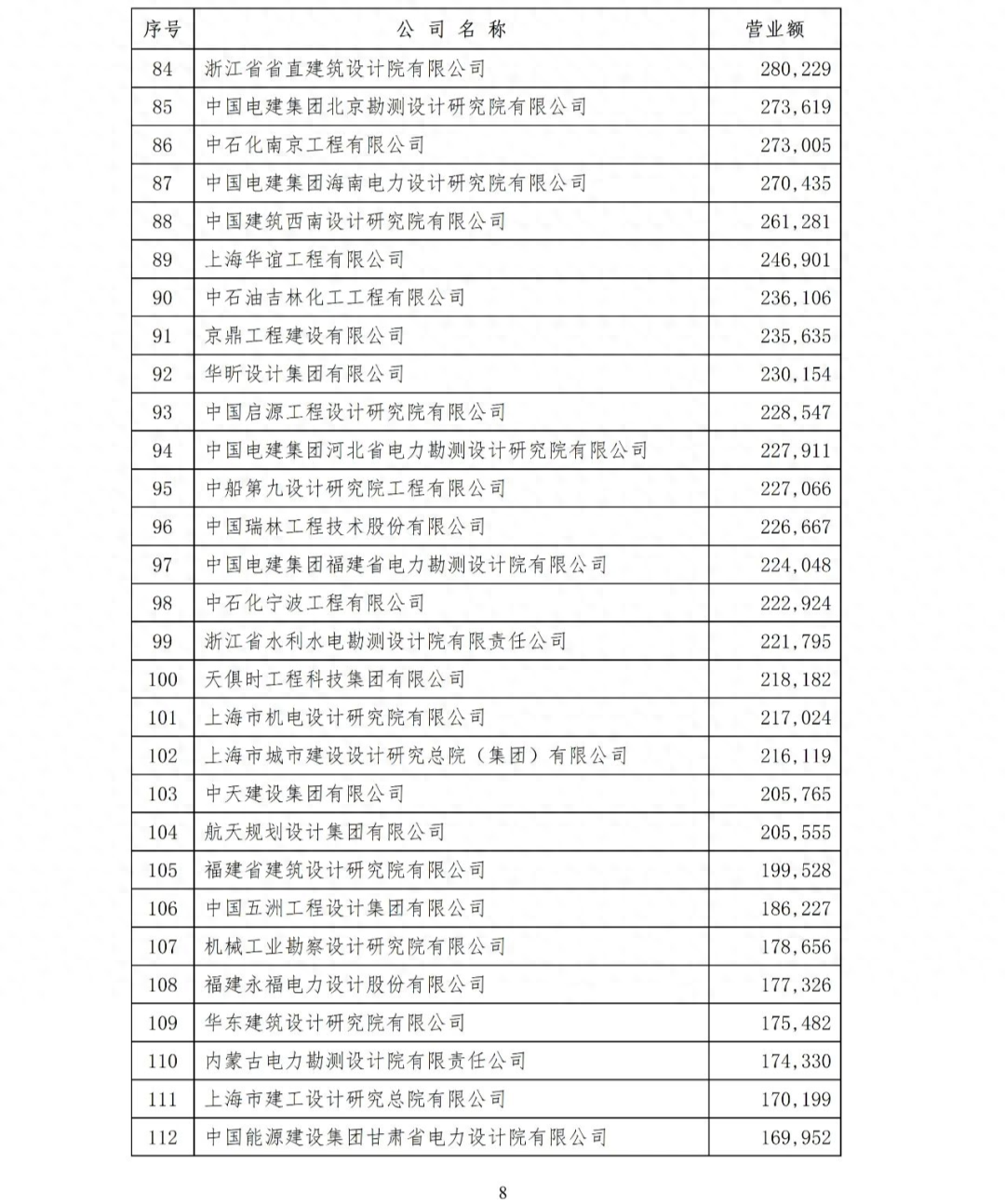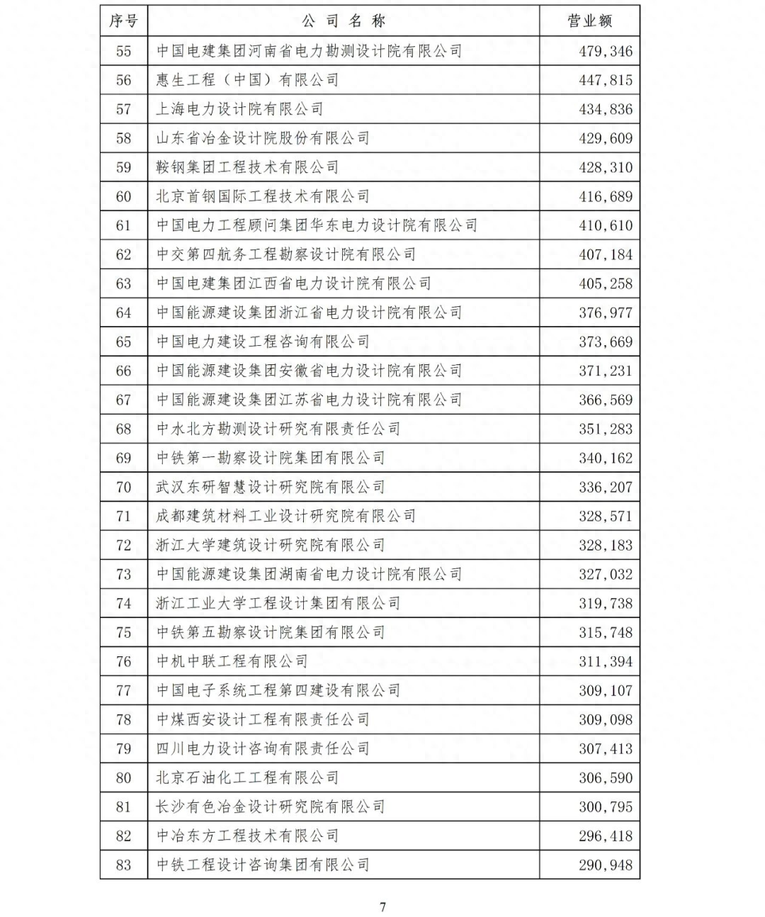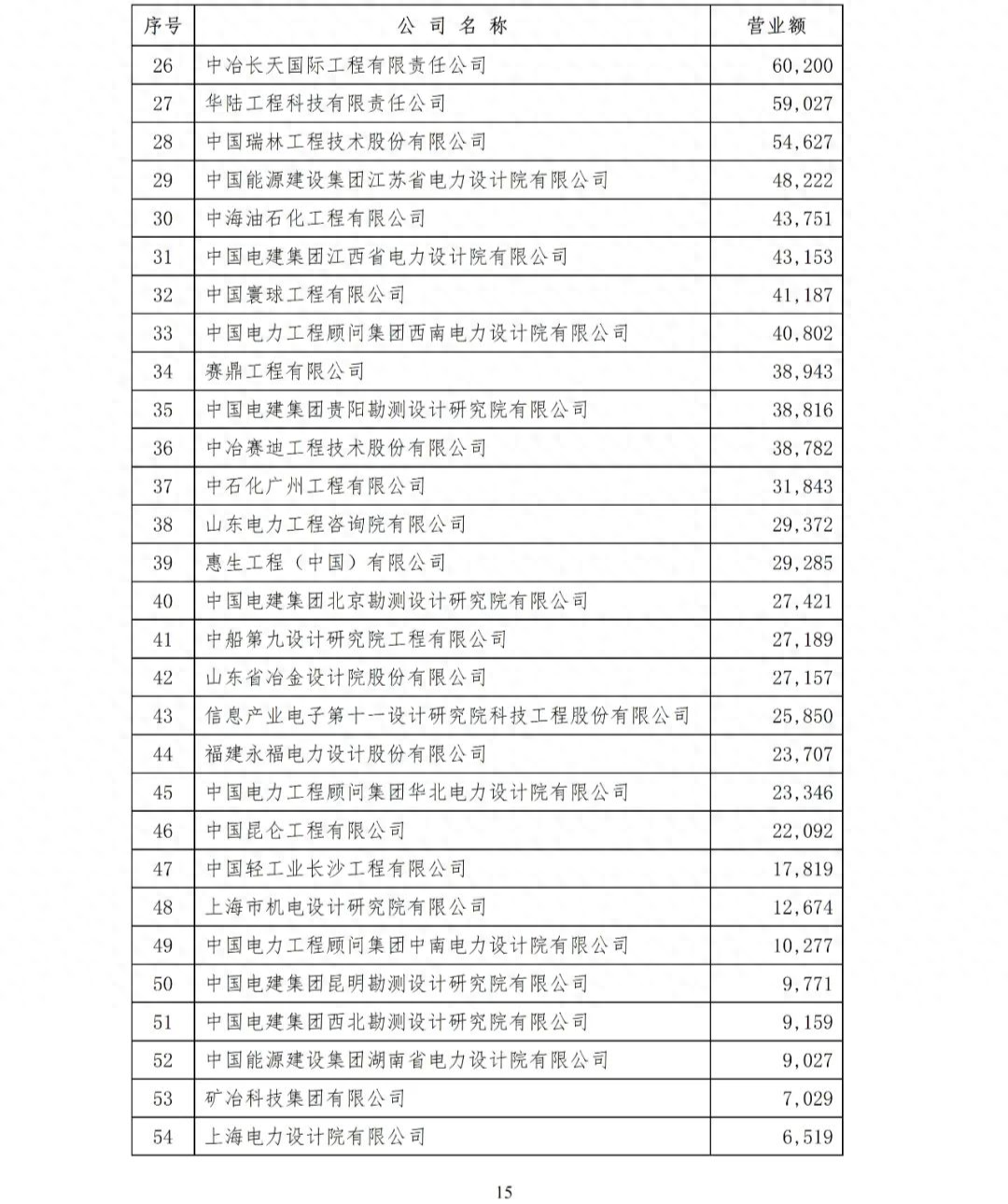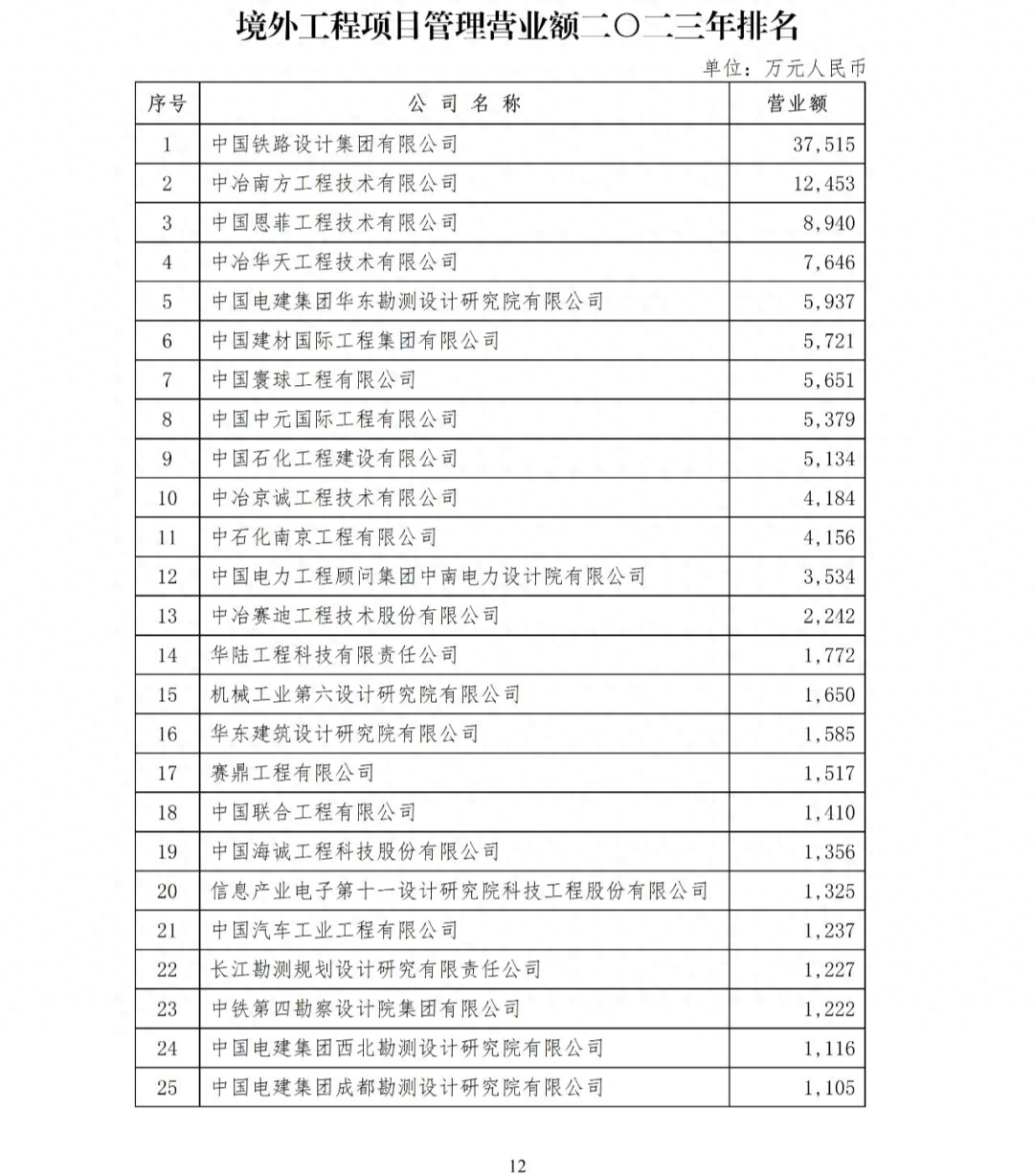 關(guān)于公布勘察設(shè)計(jì)企業(yè)工程項(xiàng)目管理和工程總承包營業(yè)額二〇二三年排名的通知