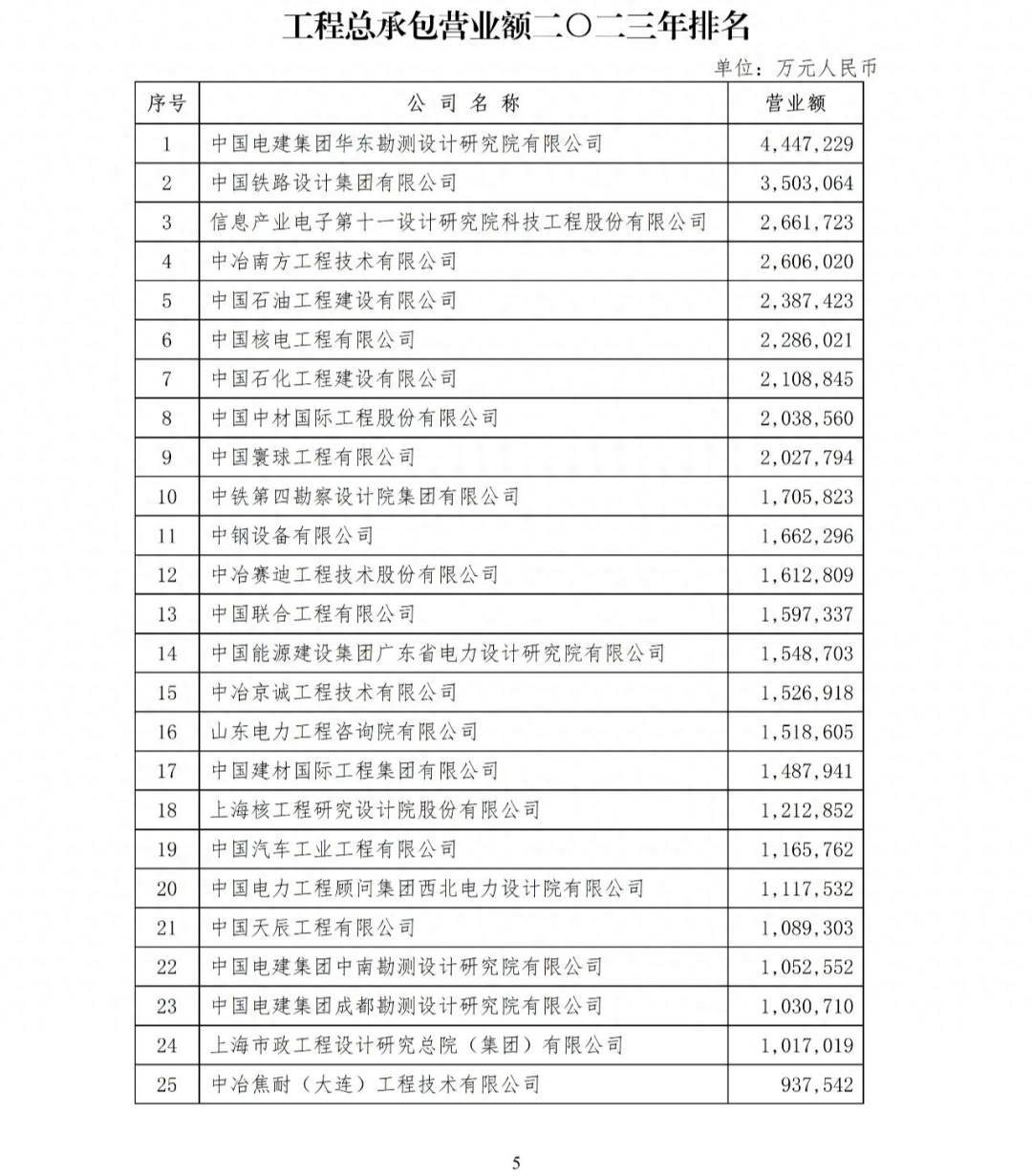 勘察設(shè)計(jì)企業(yè)工程項(xiàng)目管理和工程總承包營業(yè)額2023年排名出爐