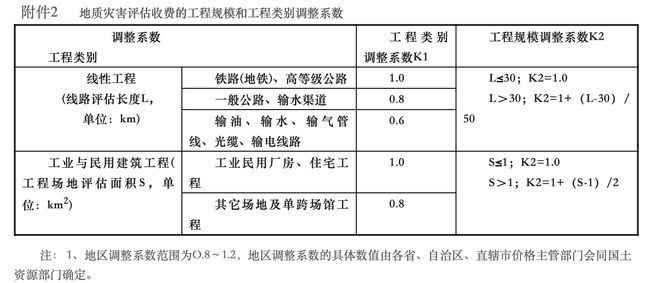 附件2:地質災害評估收費的工程規(guī)模和工程類別調整系數