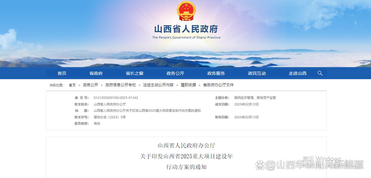 《山西省2025重大項目建設年行動方案》已經省委、省政府同意,現(xiàn)印發(fā)給你們,請認真貫徹執(zhí)行。