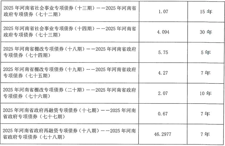【大河財立方消息】10月13日,河南省財政廳披露2025年河南省政府一般債券(十期)、專項債券(六十九至七十八期)發行文件。