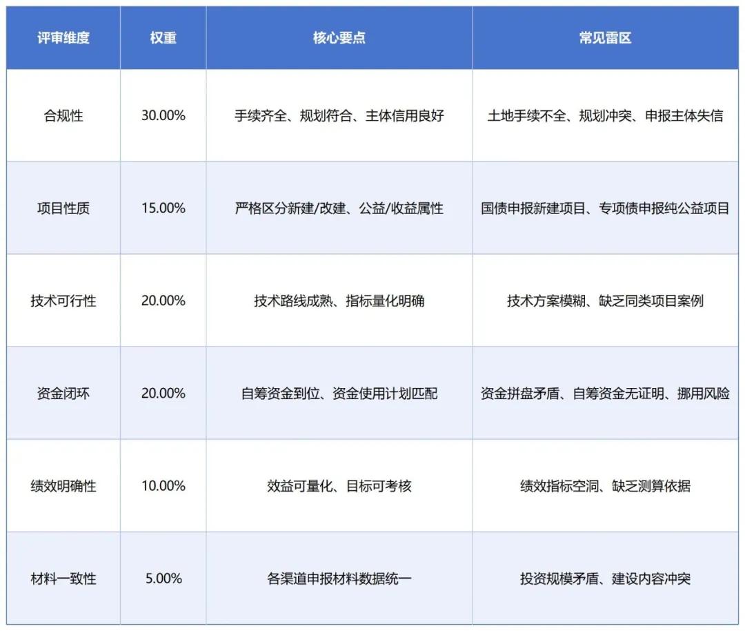 合規性要求:項目需納入國家或省級“十四五”規劃及相關專項規劃;必須完成可研批復,且安評、能評、環評、用地預審等核心手續齊全;嚴禁涉及房地產開發、樓堂館所建設、形象工程等負面清單內容。