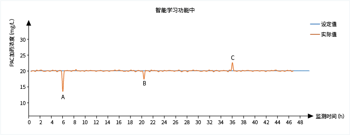 智能學習功能可根據歷史加藥數據自動學習,糾正當下的加藥偏差,達到加藥精準穩定。即使出現人為誤操作,加藥實際值發生偏差,通過智能學習程序系統會自動修正實際加藥量,恢復到設定的加藥量。